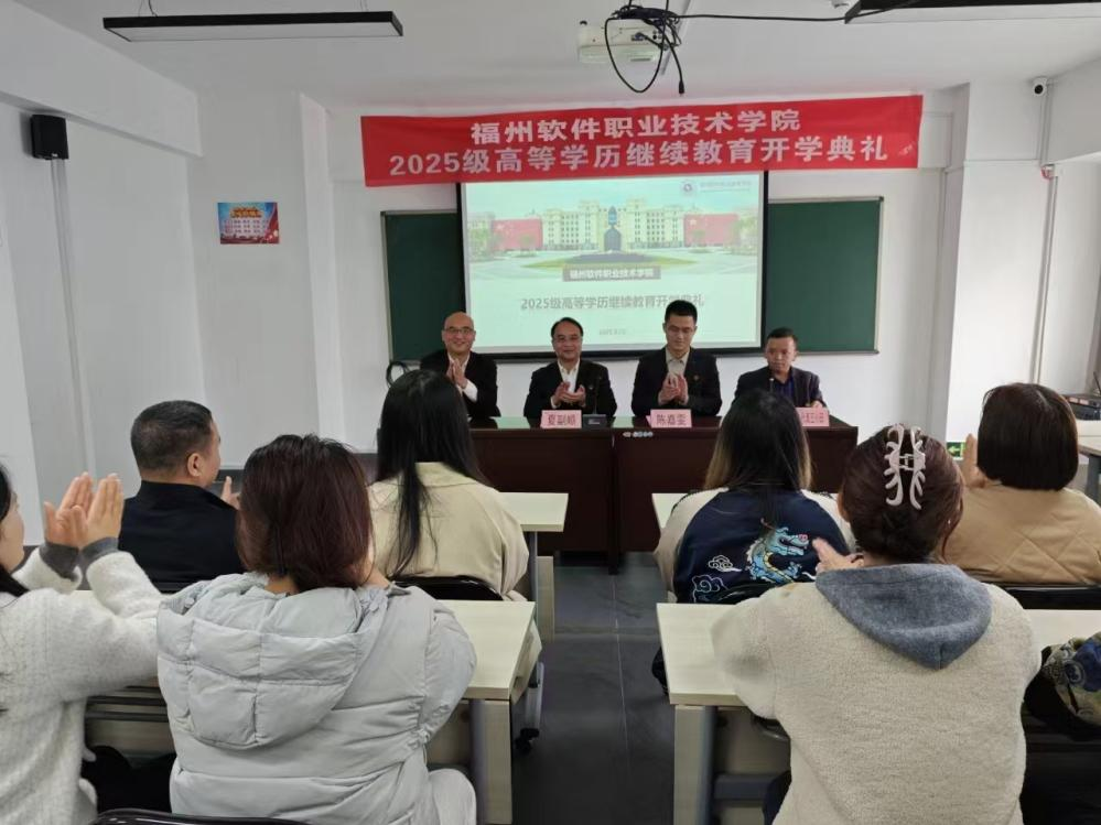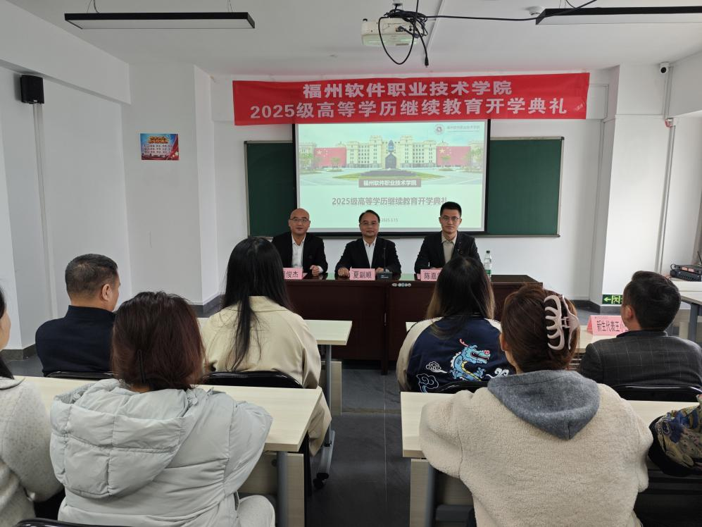 2025年3月15日上午,福州软件职业技术学院庄重而热烈地举行了2025级高等学历继续教育新生开学典礼,本次开学典礼采用线下现场参与结合线上直播平台同步直播的方式,充分考虑到成人教育学生的学习、工作实际,保障每一位学子都能顺利融入其中,不错过这一意义非凡的时刻。学校教师团队与2025级604名全体新生突破地域界限,相聚于虚拟的“云端”空间,携手翻开新学期学习之旅与成长之路的全新篇章,共同开启了追求知识、提升自我、实现价值的新征程。学校职业培训处处长夏副顺、终身教育培训中心主任周俊杰等领导出席了本次的开学典礼,开学典礼由职业培训处陈嘉雯老师主持。